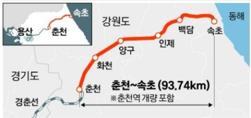 ✔ 신설 정거장: 화천, 양구, 인제, 백담, 속초